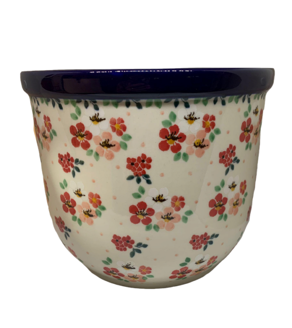 Wat de Bunzlau bloempot echt uniek maakt, is het prachtige handgeschilderde patroon. Elk stuk is met de hand gedecoreerd met intrigerende motieven, zoals bloemen, bladeren en geometrische ontwerpen, die de schoonheid van de natuur en de traditionele kunst weerspiegelen.